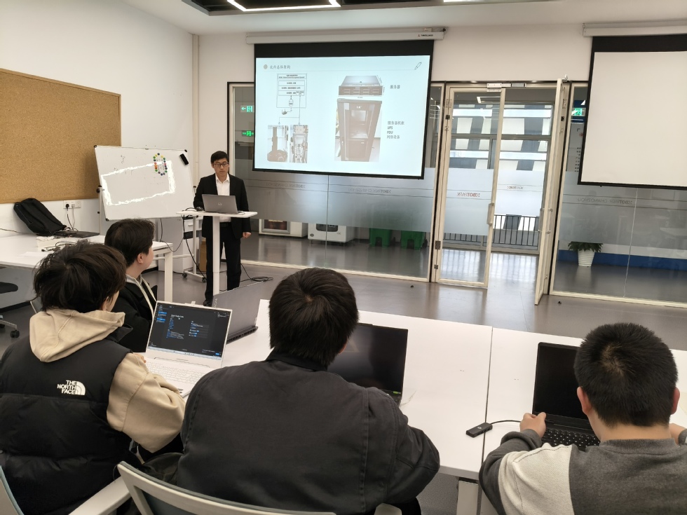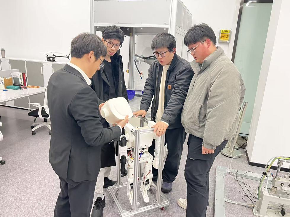 实训中,机械组在潘国威老师带领下,完成机器人结构理论学习、有限元仿真验证,通过 3D 打印等技术完成机械结构实物制作;运动仿真与控制组由虞晴老师指导,开展运动学相关理论学习,完成机器人运动学建模与多部位运动控制;焦洋老师带领的软件组掌握云控平台架构,完成平台核心功能开发,优化通信协议与界面交互,实现云边协同控制。
